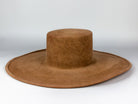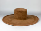 Handcrafted fur felt hat with a straight crown and wide brim. Velvety finish.