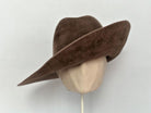 An original crown hat with a central slit and a half-turned brim. The uneven brim enhances visibility and stylizes the figure by creating a diagonal visual effect.
