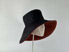 Reversible hat made of raw silk. Inspired by the bucket hat and with a romantic touch.