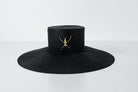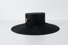 Black sisal hat with an exclusive, hand-crafted piece of jewelry. Simple, elegant, and versatile.
