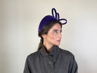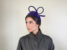 Diadema ancha de terciopelo morado decorada con aplicación geométrica.