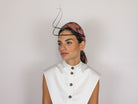 Headband made of abaca and painted silk with two black ostrich spines.