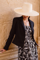 Premium quality, 4/5 mm braided wheat straw hat. Straight crown and wide brim. The crown is slightly narrower at the top, creating a flattering shape for any face shape. It features grosgrain ribbons so you can tie it in the front or back of your neck. You can also use them to tie it behind your back, or simply tuck them into the crown if you prefer not to wear them at all.