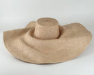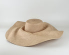 Nude-colored toquilla straw hat (Panama Hat DO) with a conical crown and wavy brim.