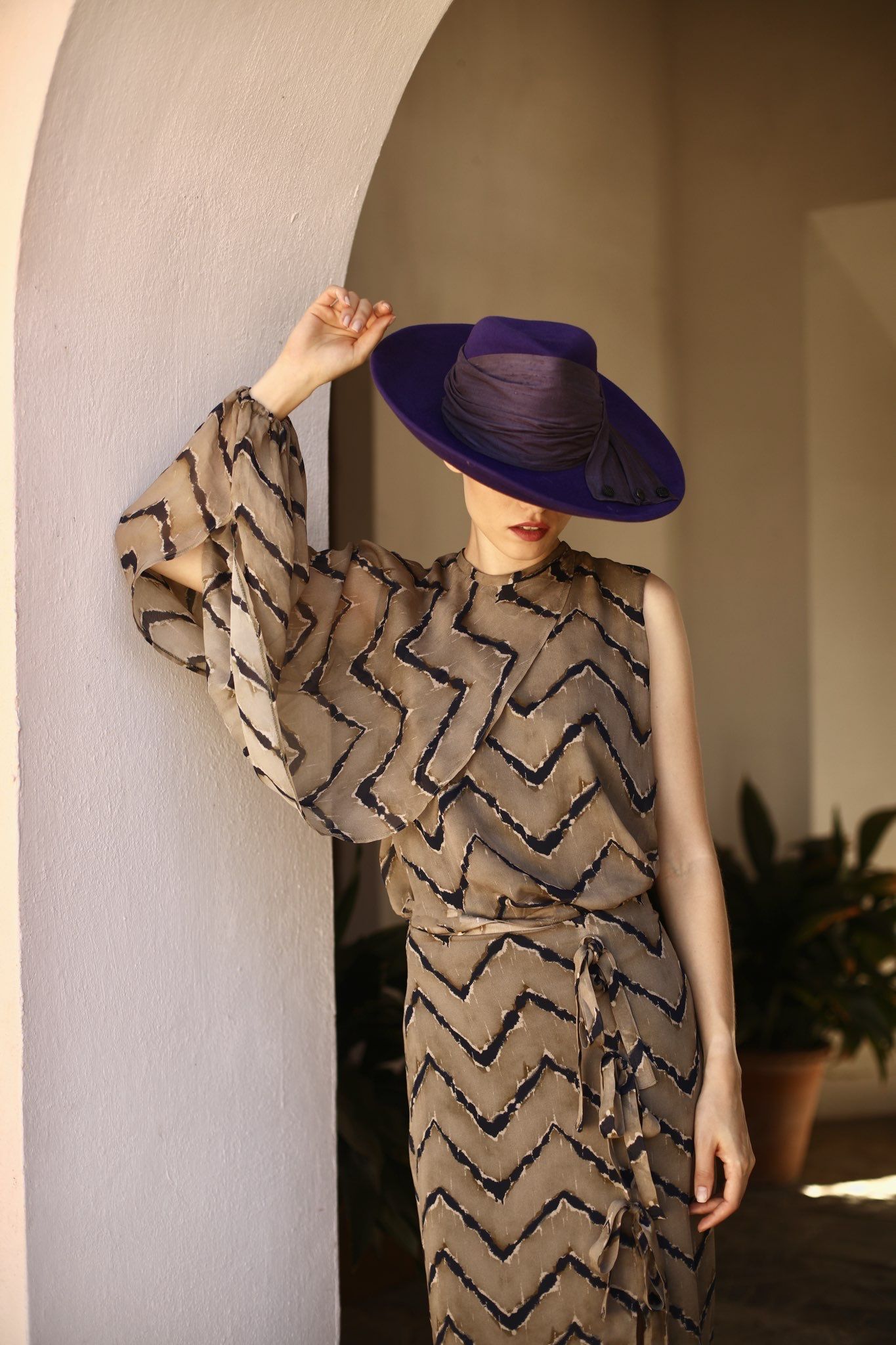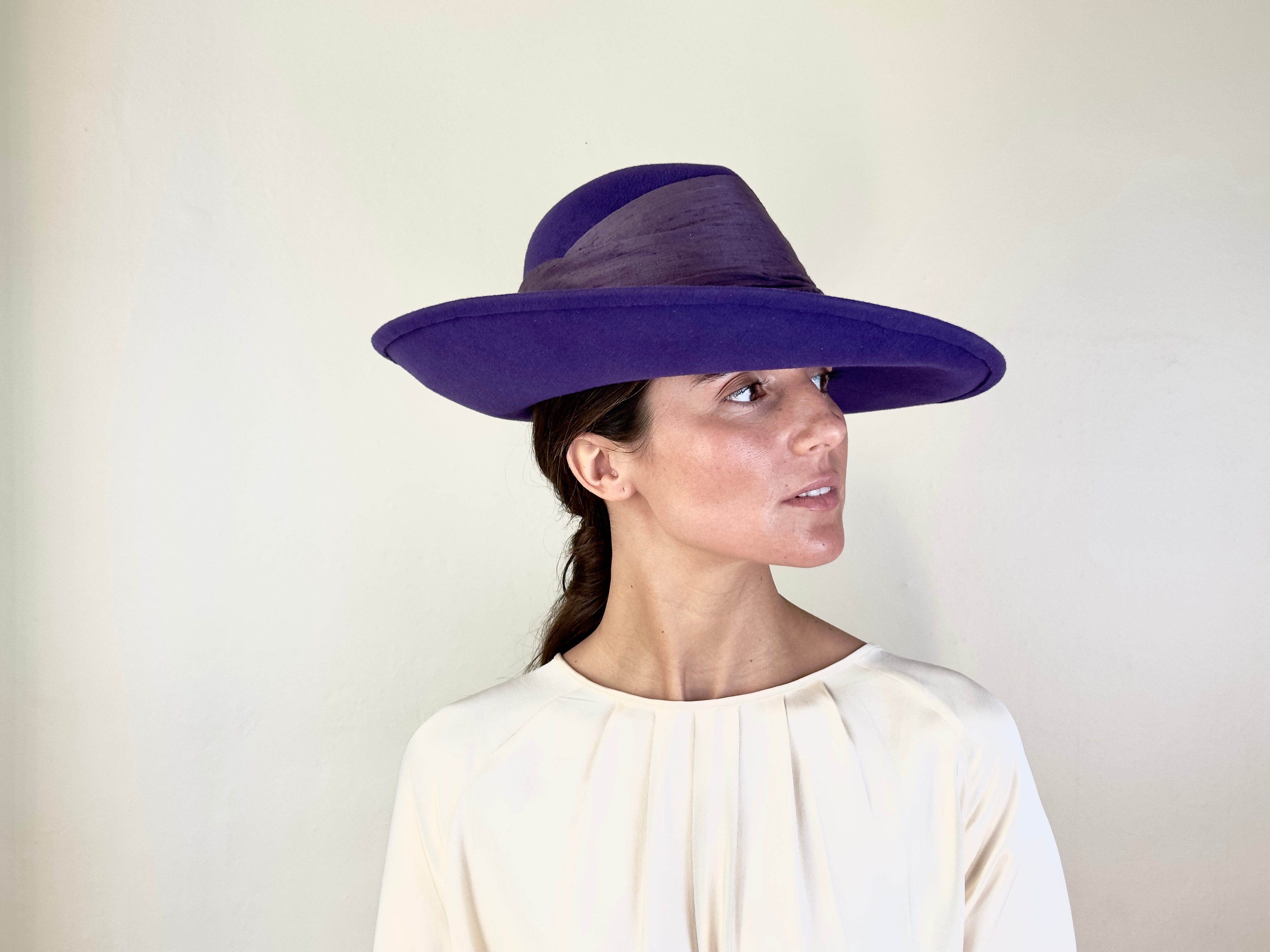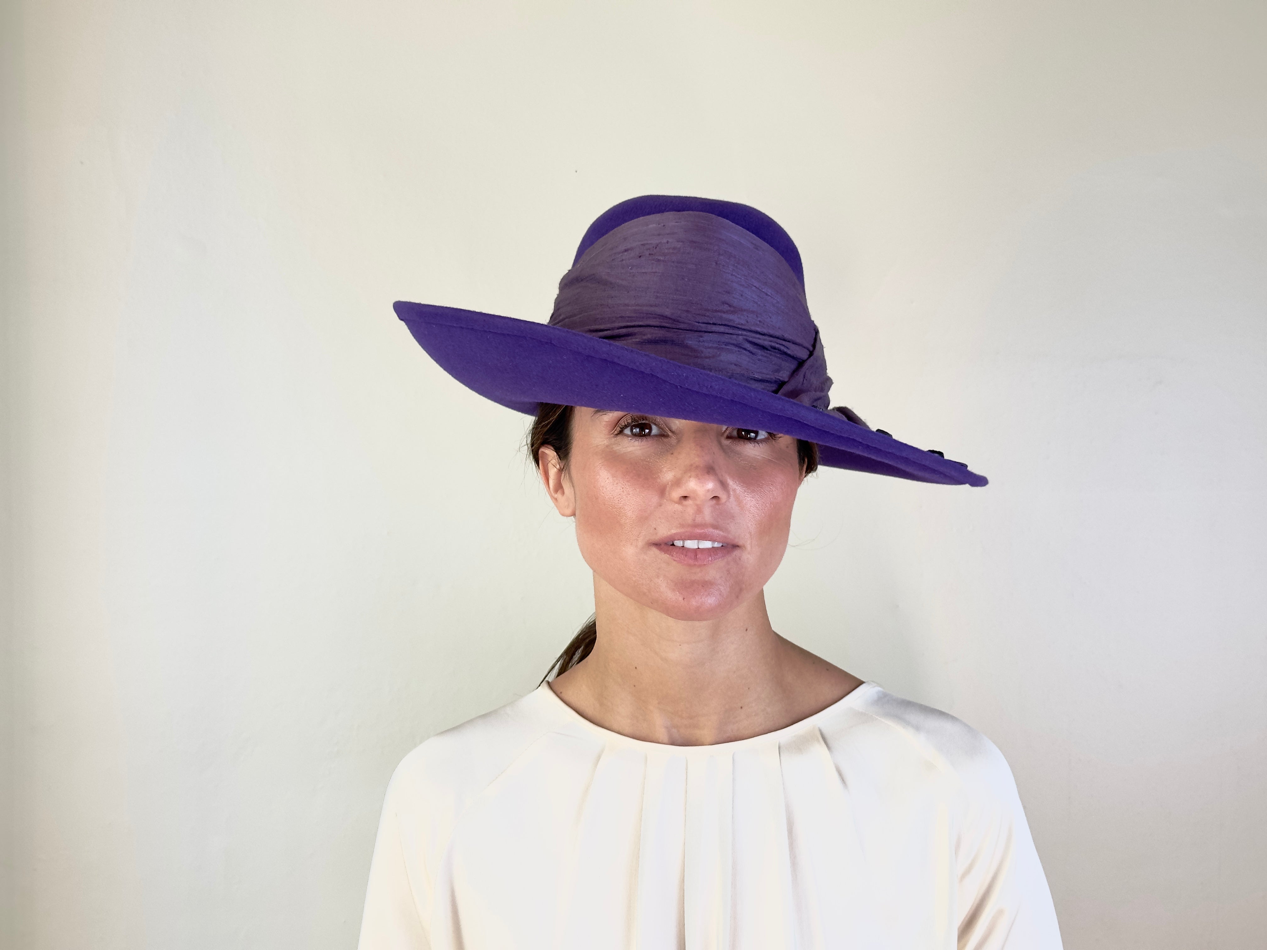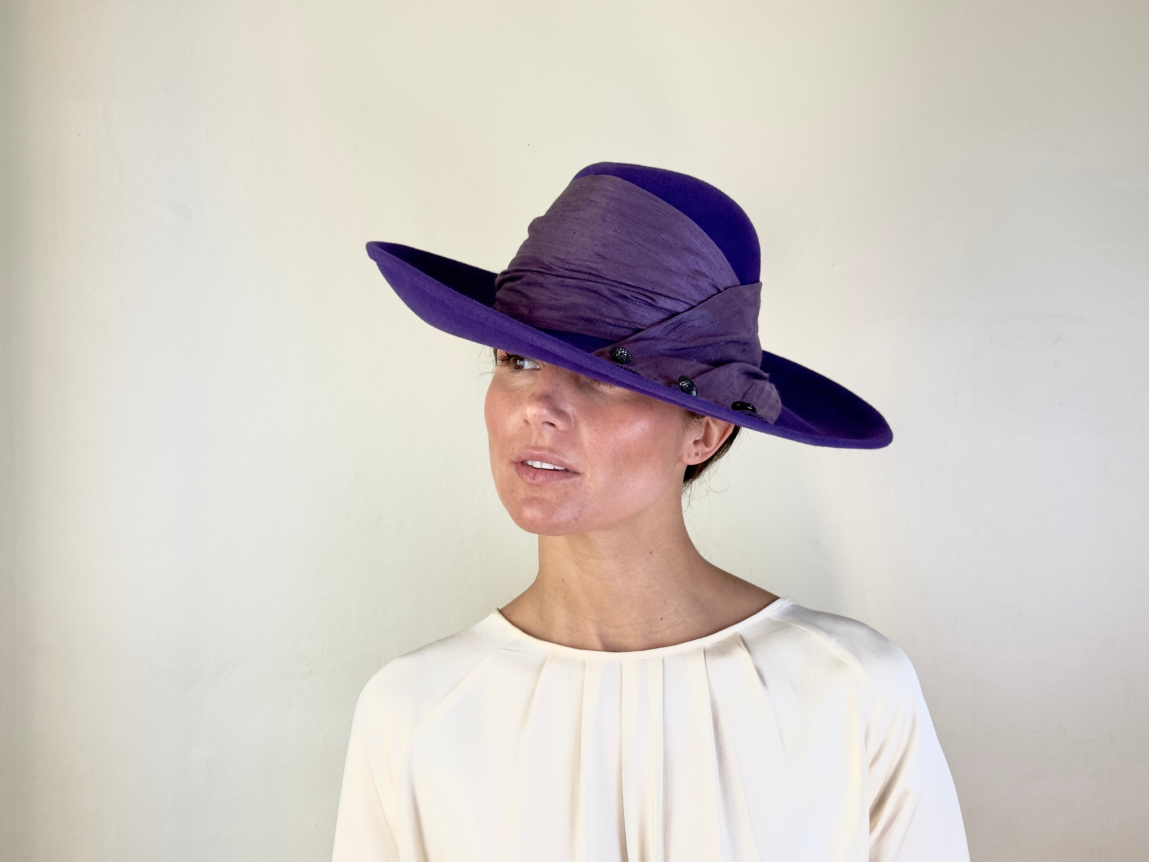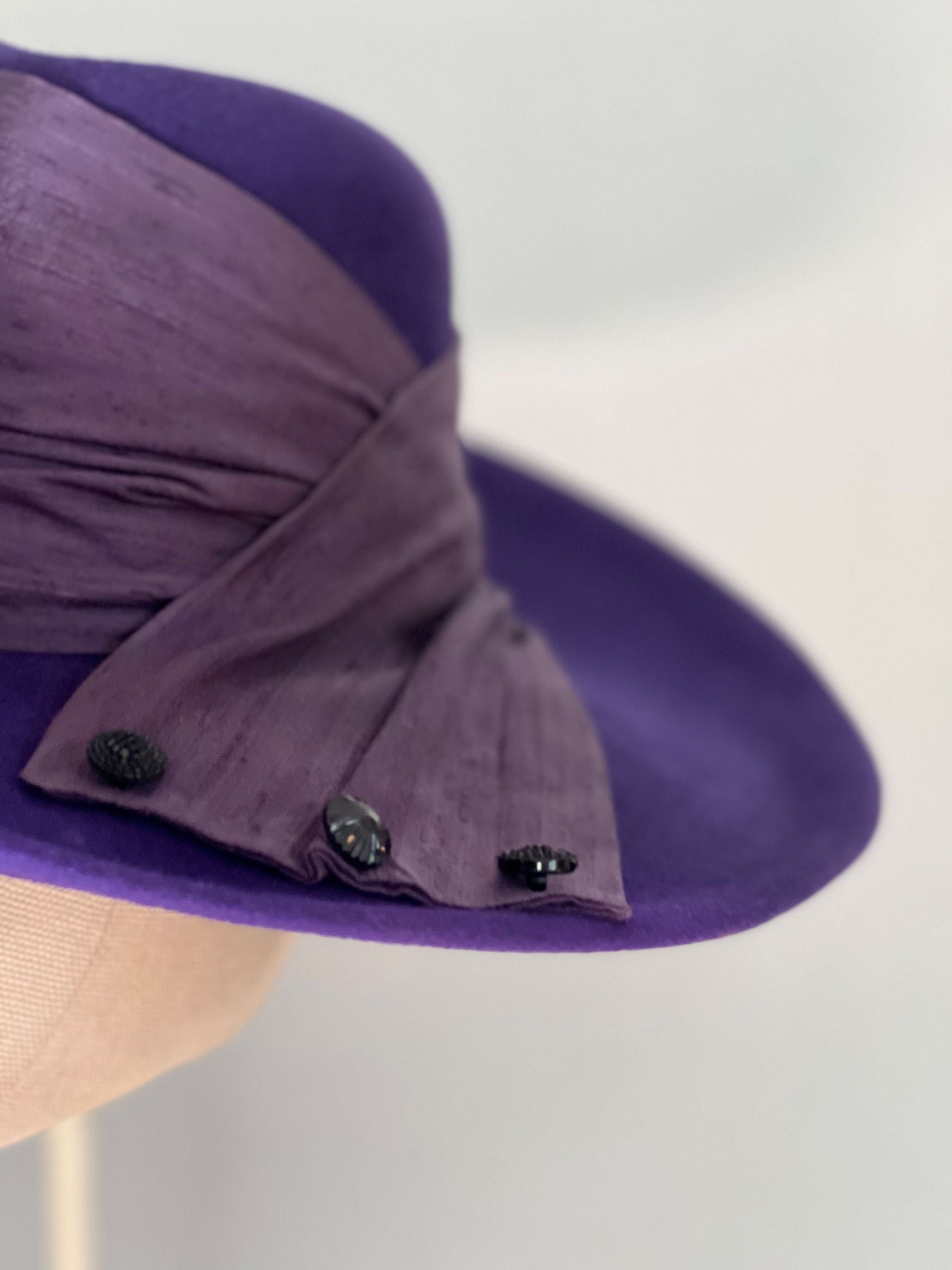 Luisa Purple Felt Hat with Wild Silk and Buttons