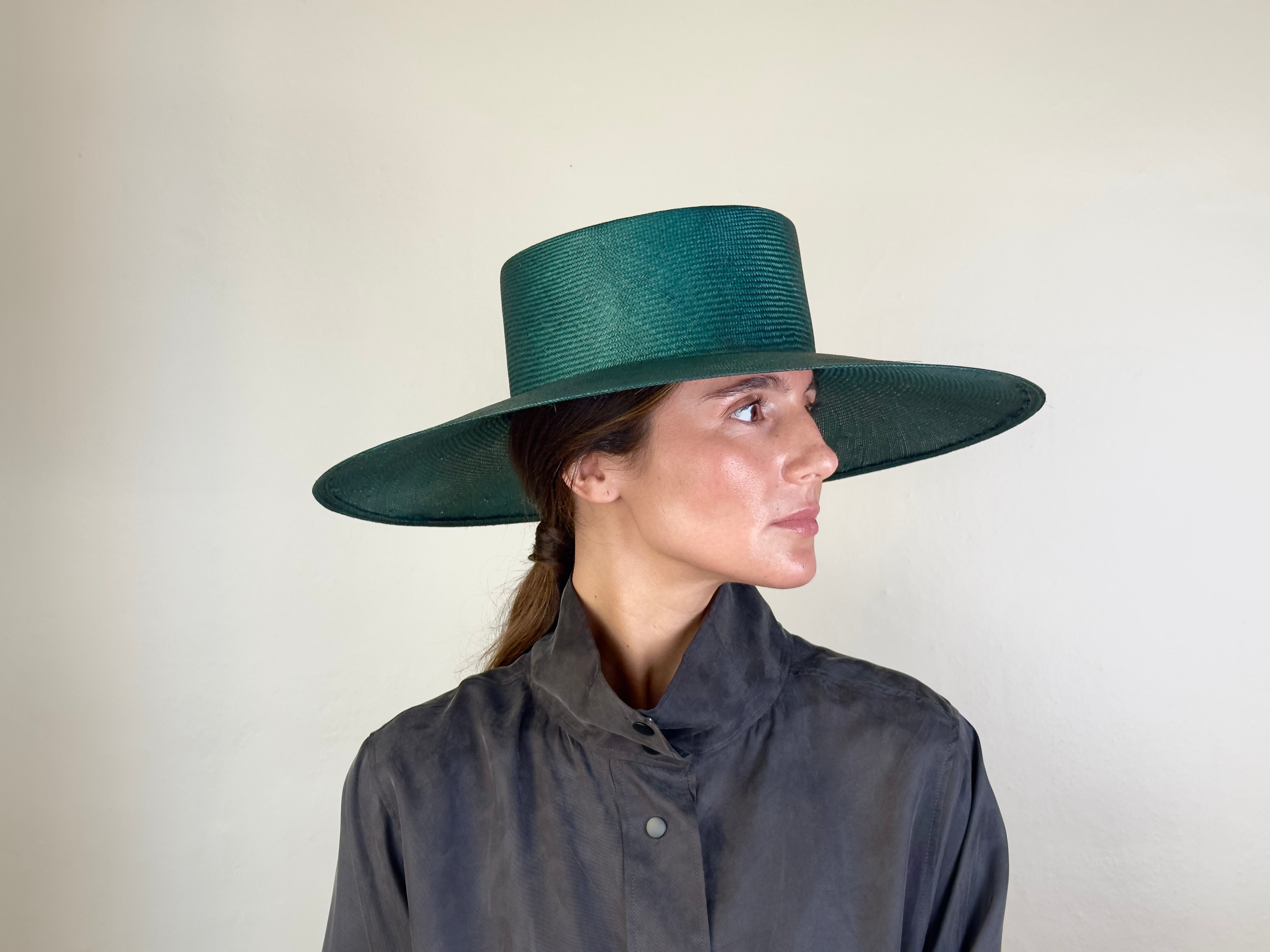 Pamela de copa recta y ala ligeramente convexa. Material ligero, fácial de llevar, cómodo al movimiento y perfecto para cualquier época del año.