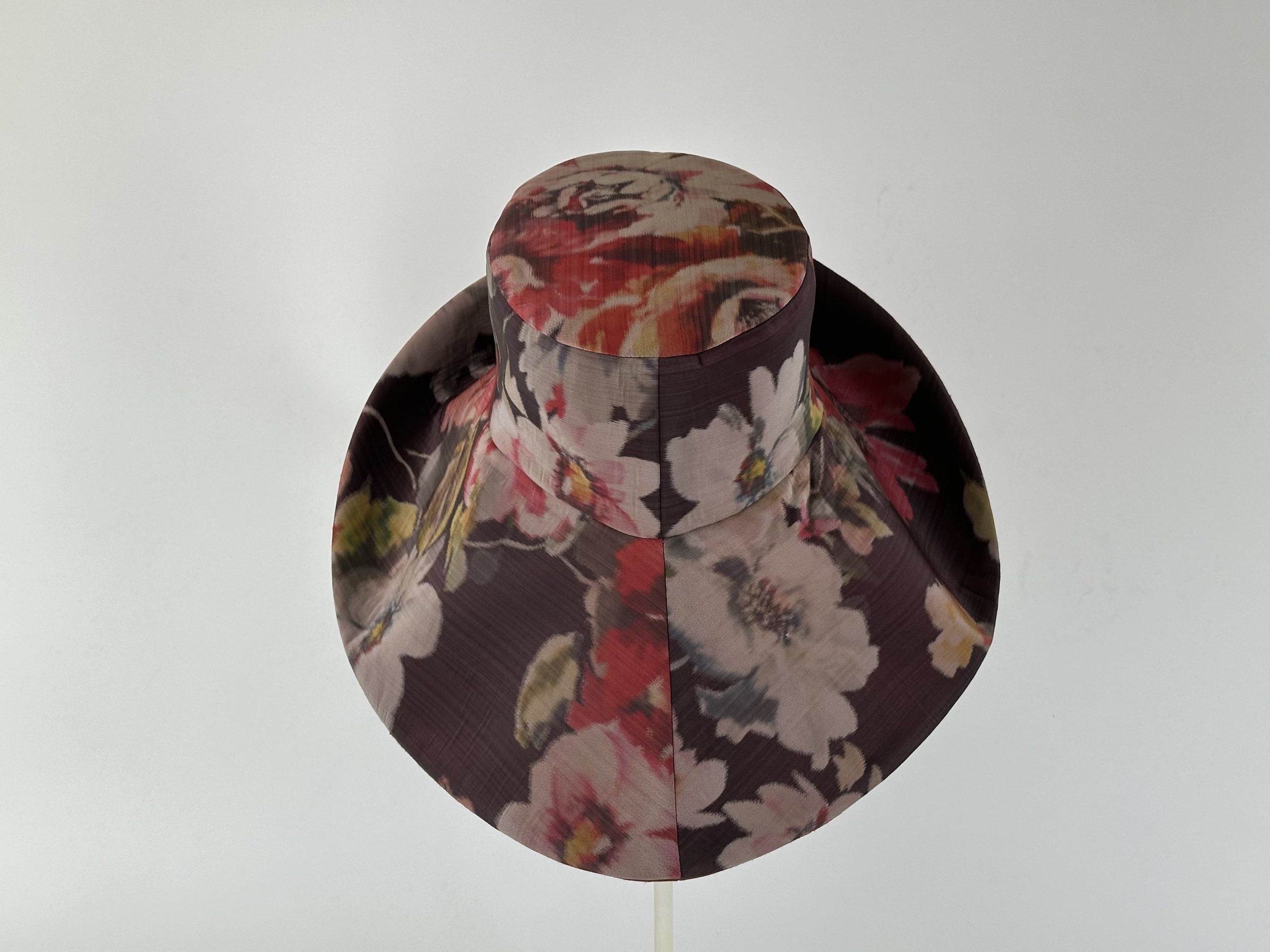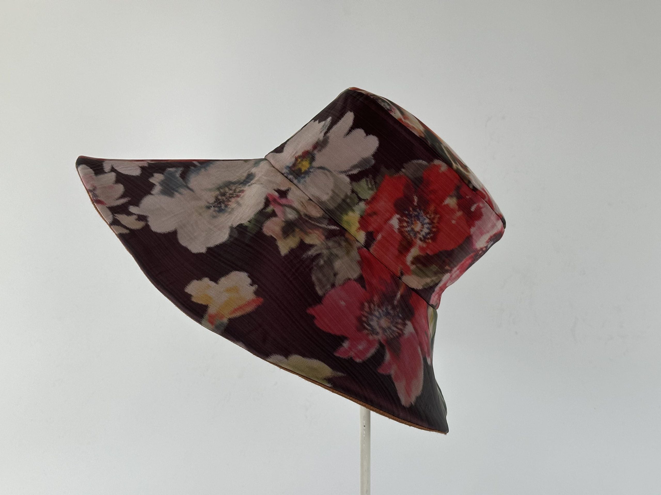 Reversible hat made of wild silk. Inspired by the bucket hat and featuring a 1920s-inspired design.