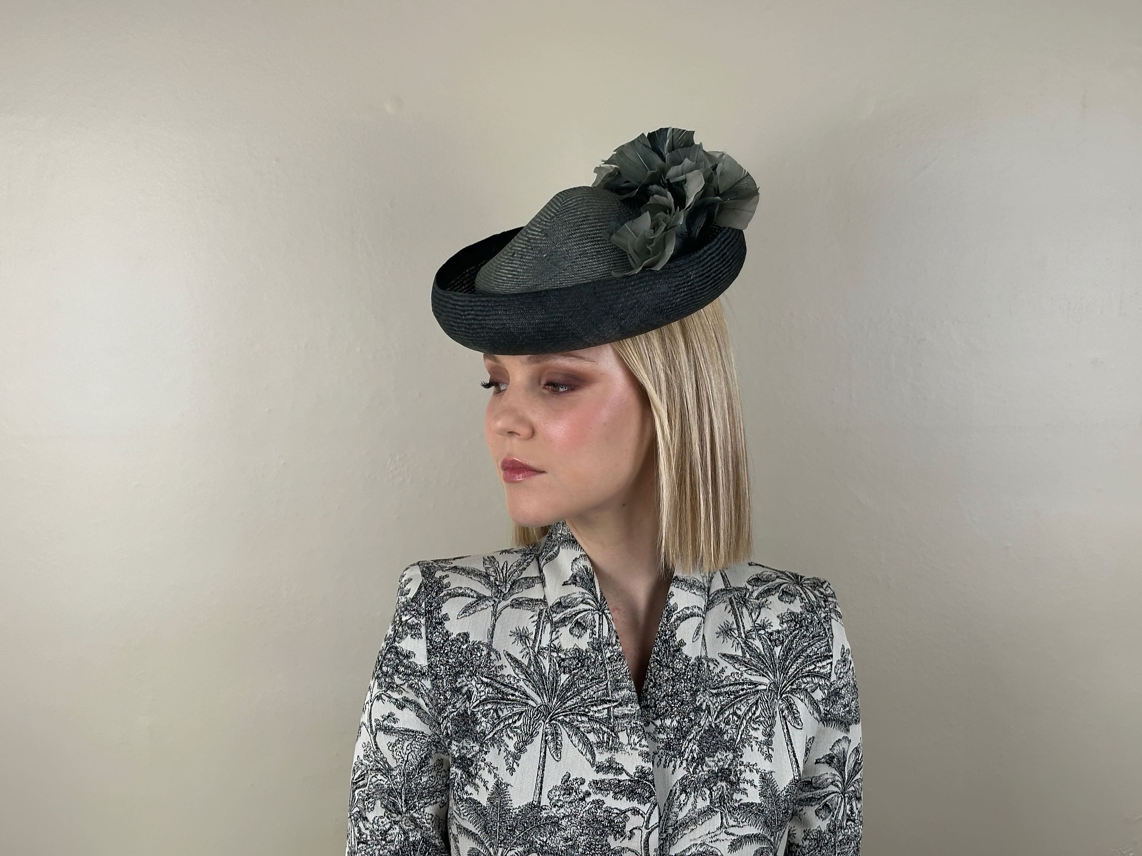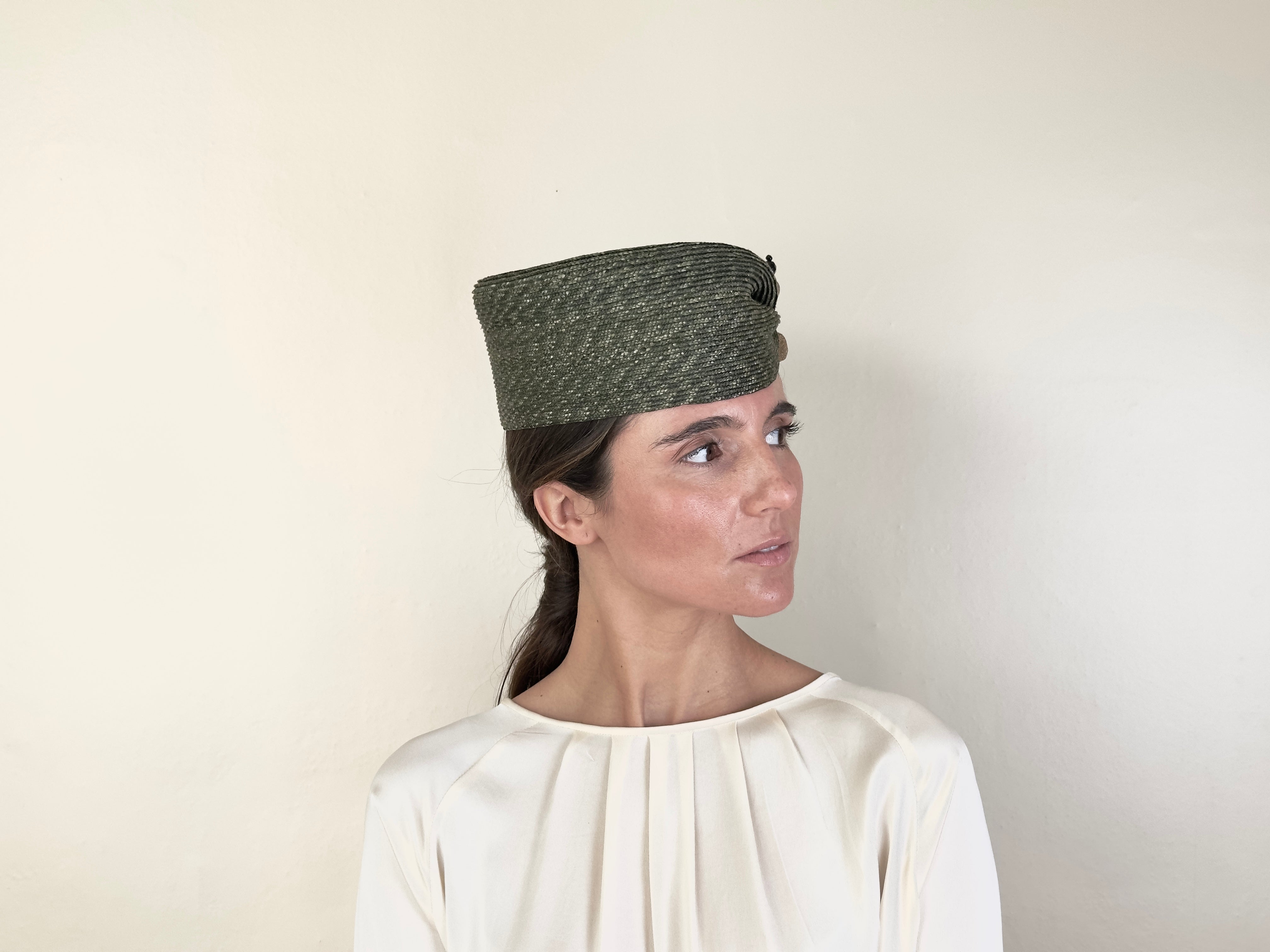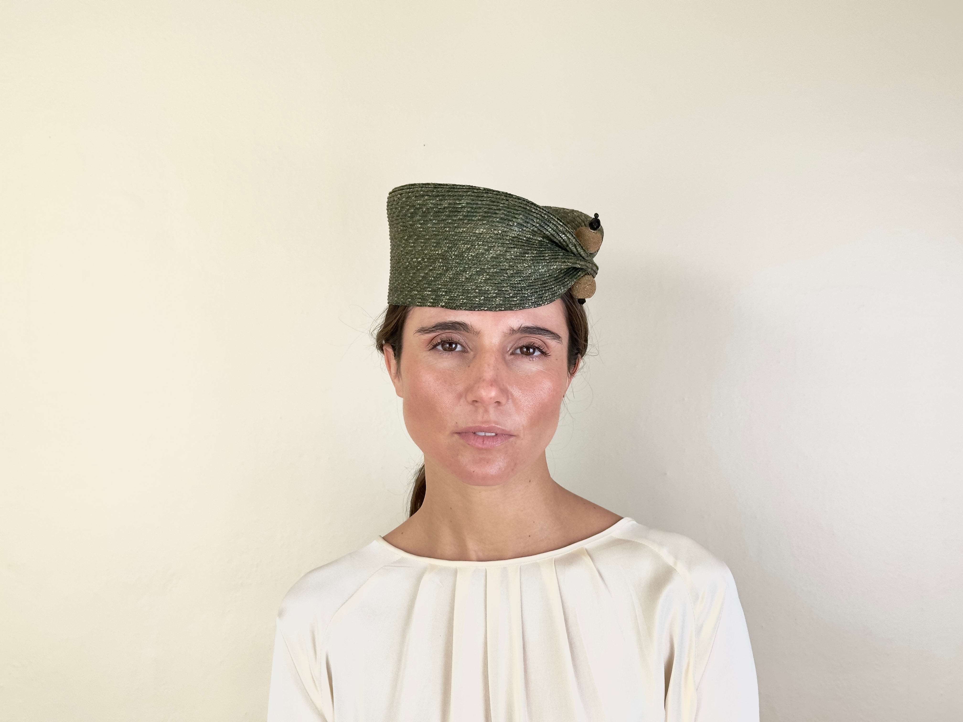 Two-tone Morla Sinamay Headpiece, Green Beige