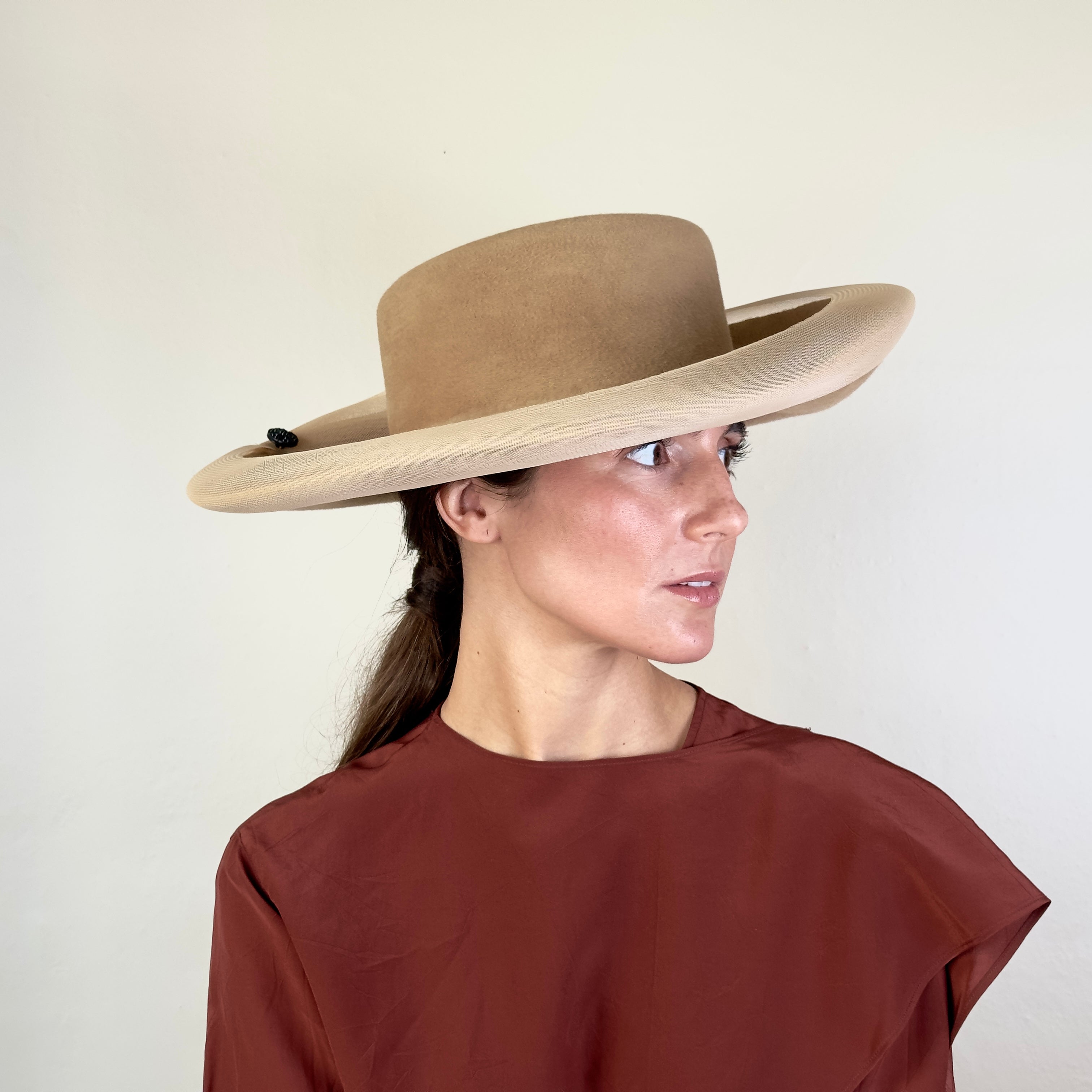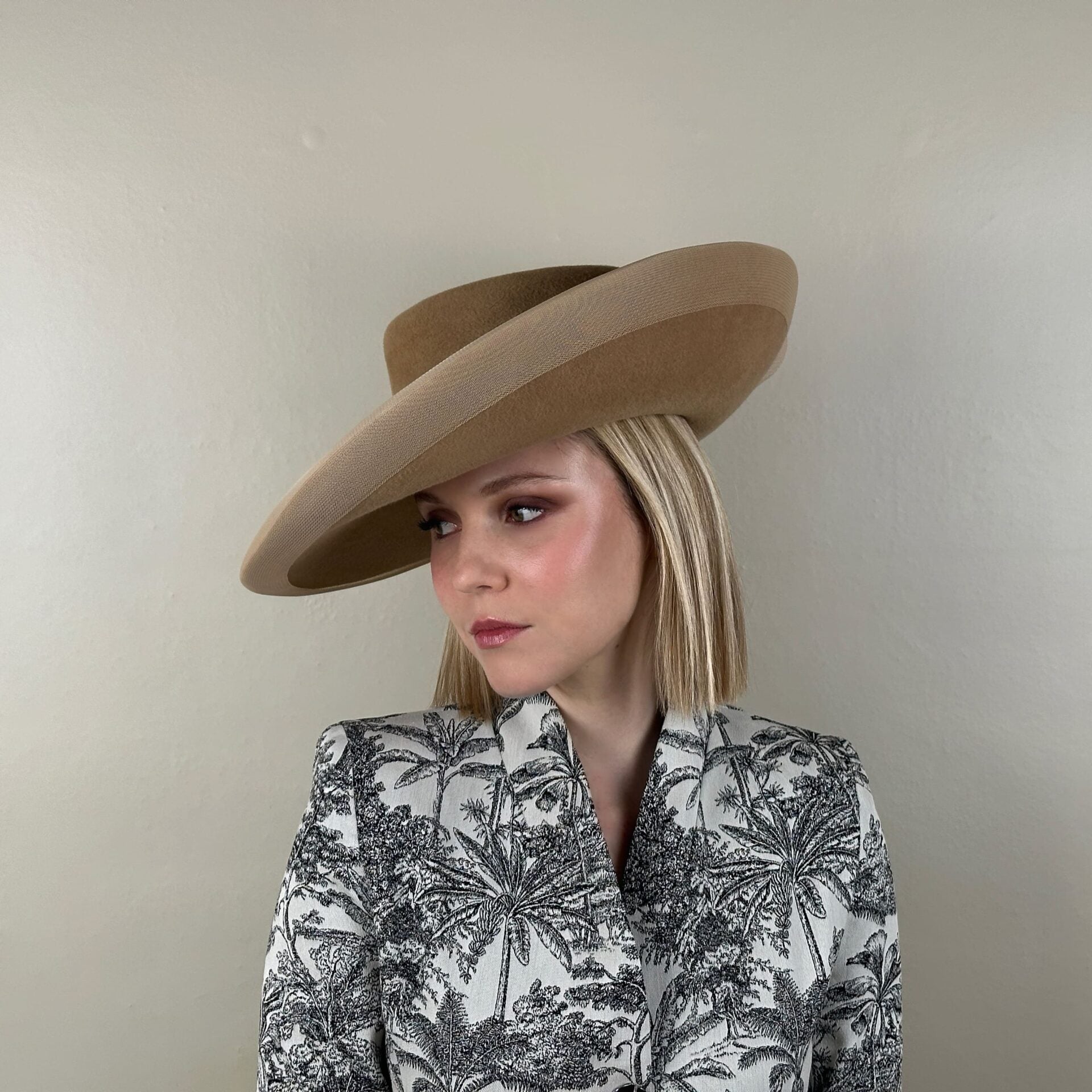 Not sure which one to choose? Our team will guide you to find the perfect hat or pamela for your dress, hairstyle, and style, ensuring that your choice is elegant and appropriate for the type of event.