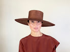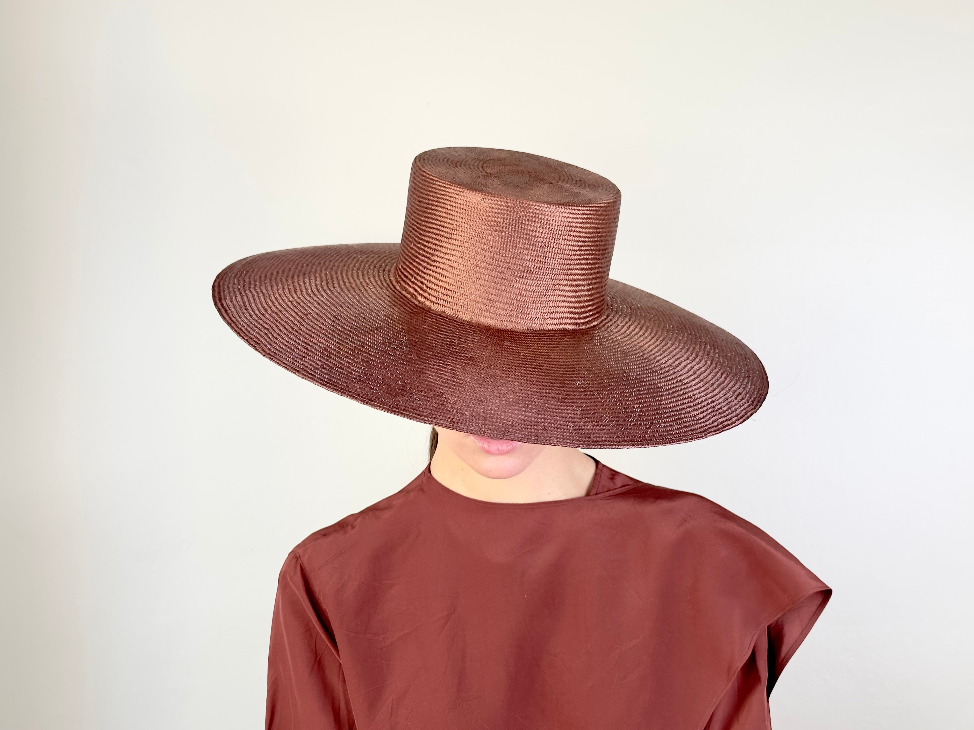 Pamela de sisal con degradado sutil en colores marrones óxido . Copa cuadrada y ala recta.
