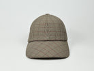 Gabardine baseball cap with a Prince of Wales print in beige, gray, and red. Lined with cotton satin. Adjustable elastic at the back.