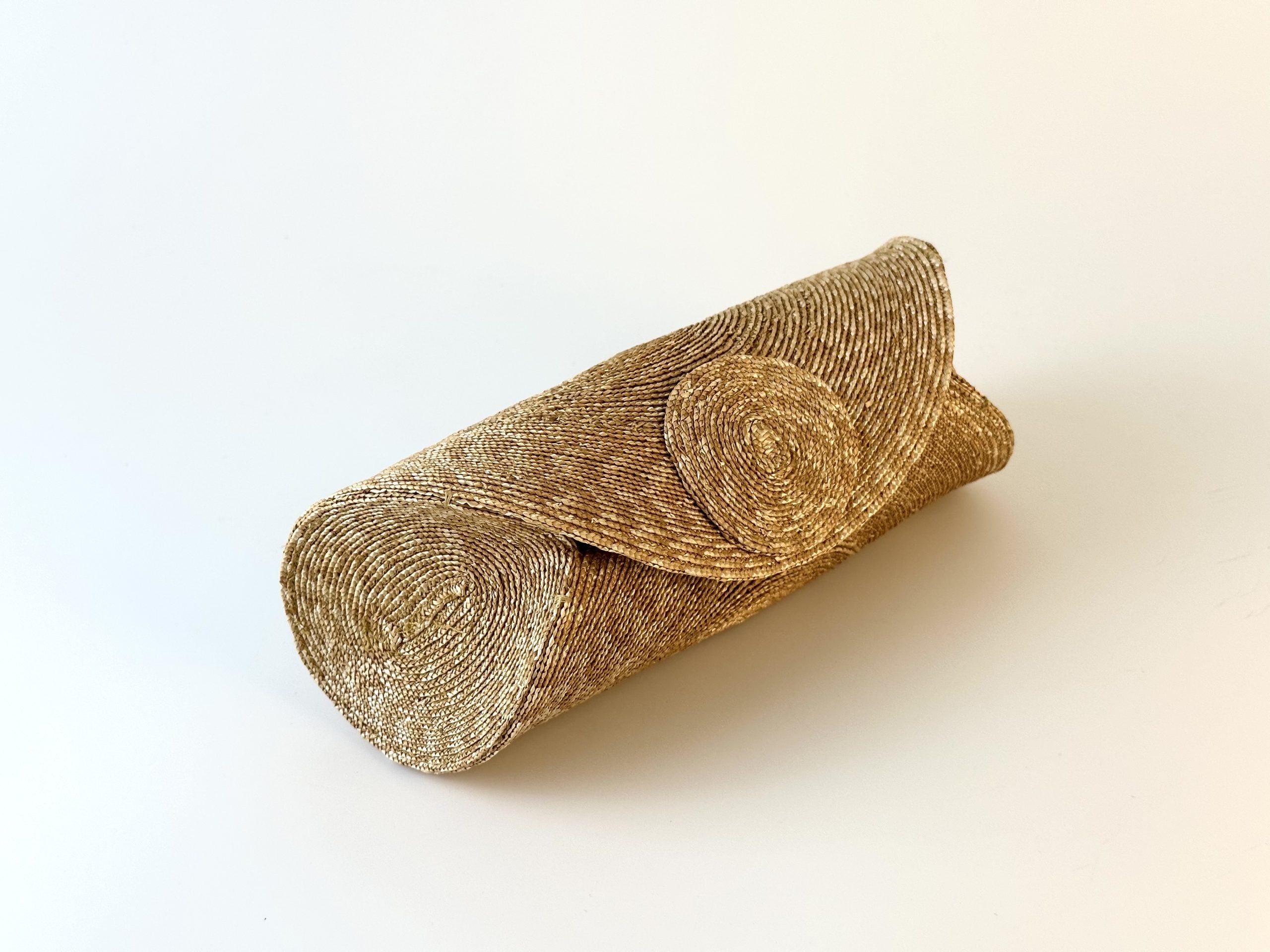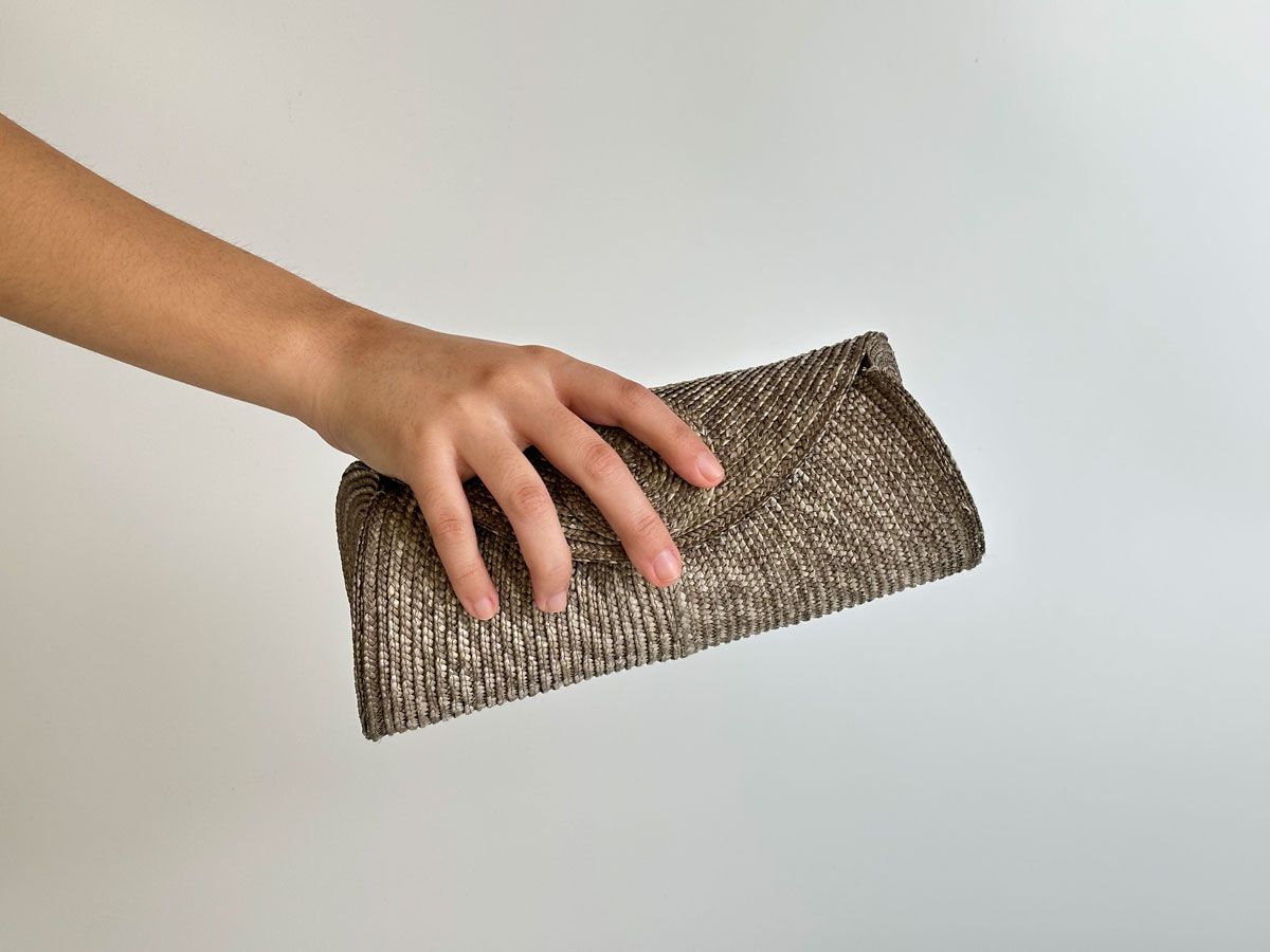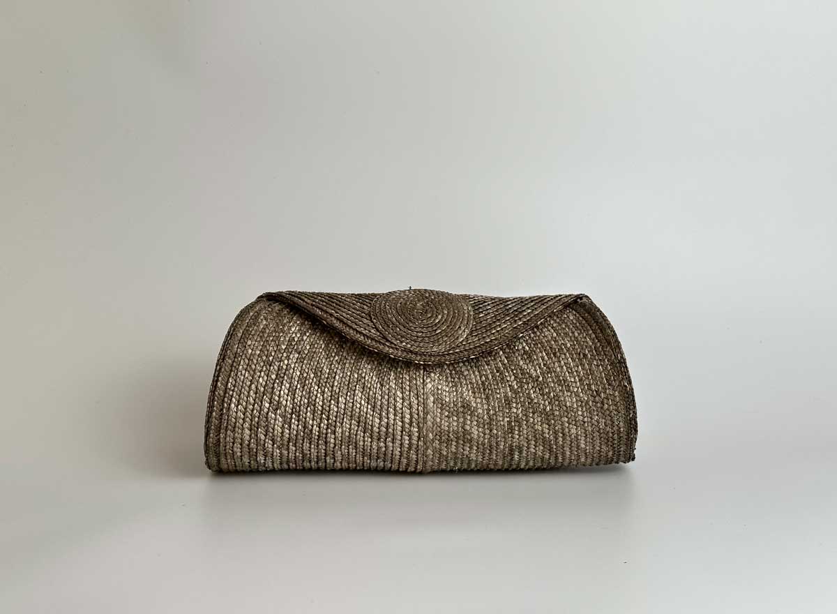 Hand-stitched, fine woven wheat straw handbag. Elegant, simple, and versatile.