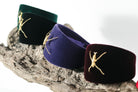 Wide, handmade cotton velvet headband. Decorated with a handcrafted piece of brass jewelry with a subtle gold plating.