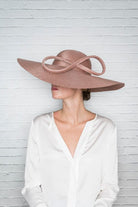 Synthetic nude hat. Round crown with nude velvet infinity.