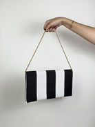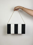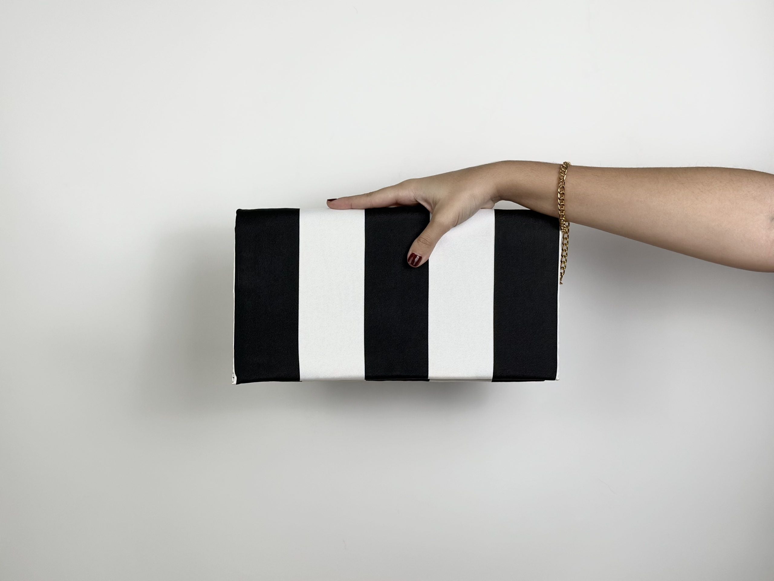 Cartera elaborada en mikado estampada a rayas color blanco y negro.