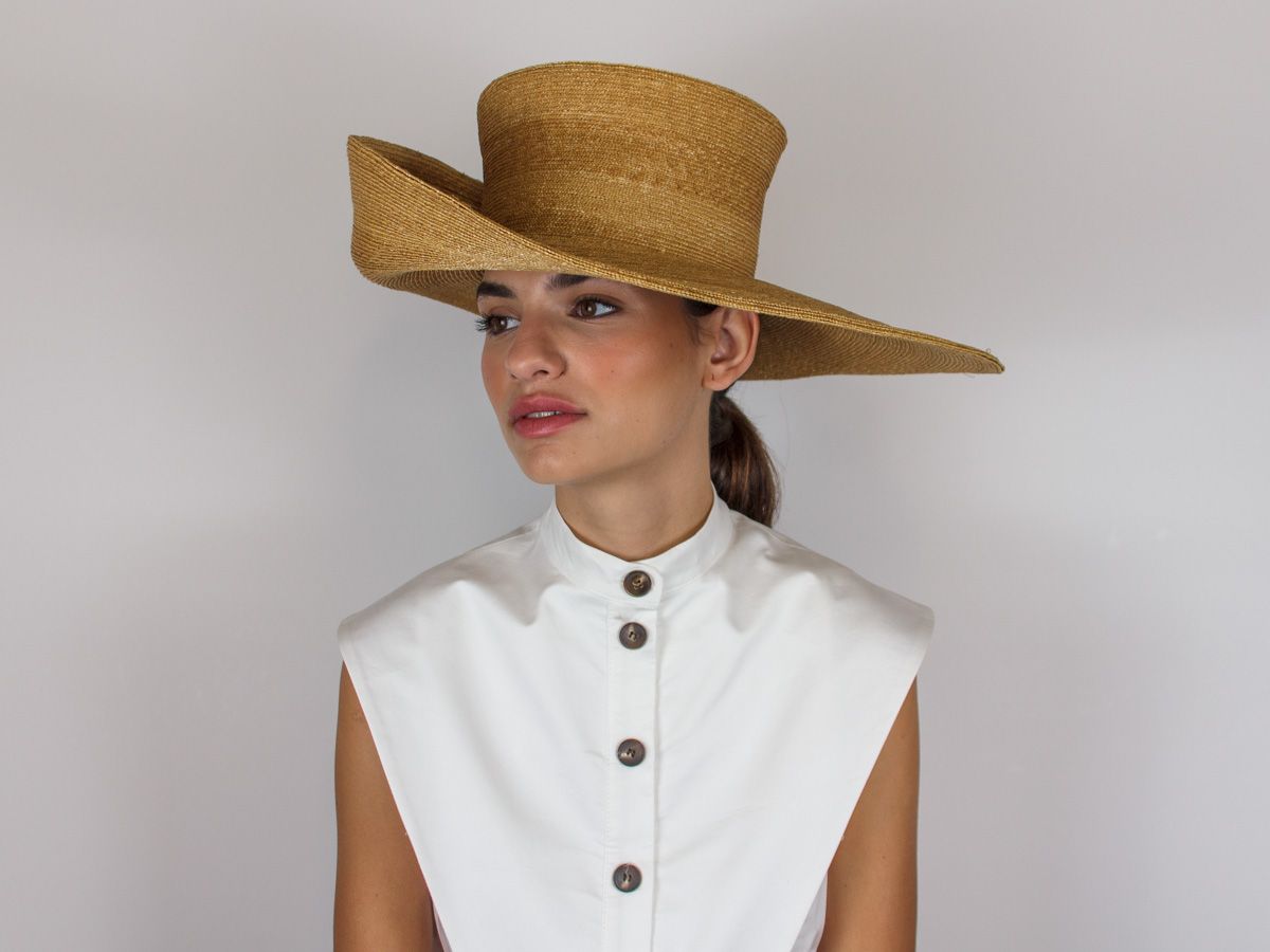 Pamela de paja de trigo en color natural. Copa cónica y media ala vuelta.