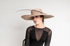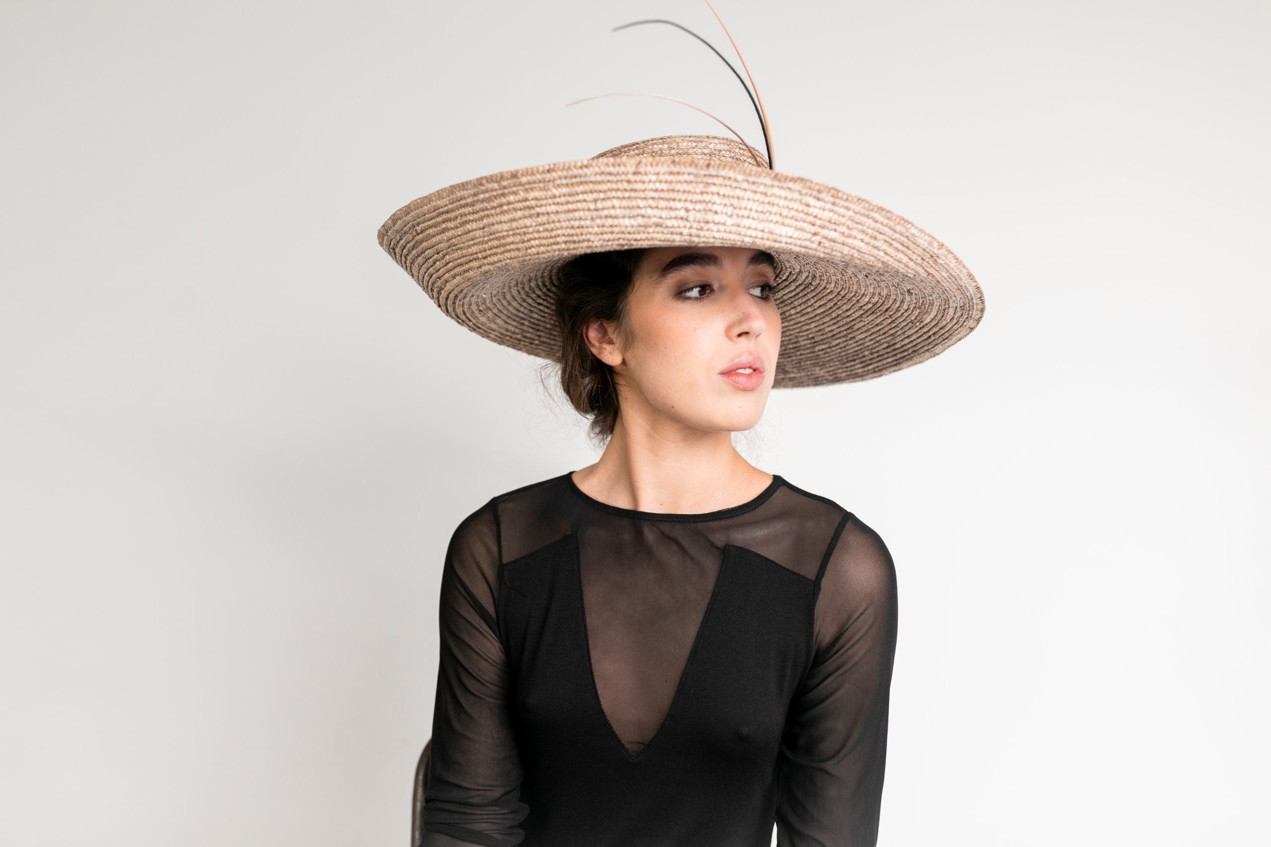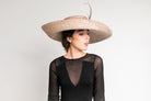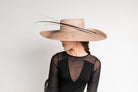 Pamela de paja trenzada color arena decorada con tres raquis.