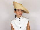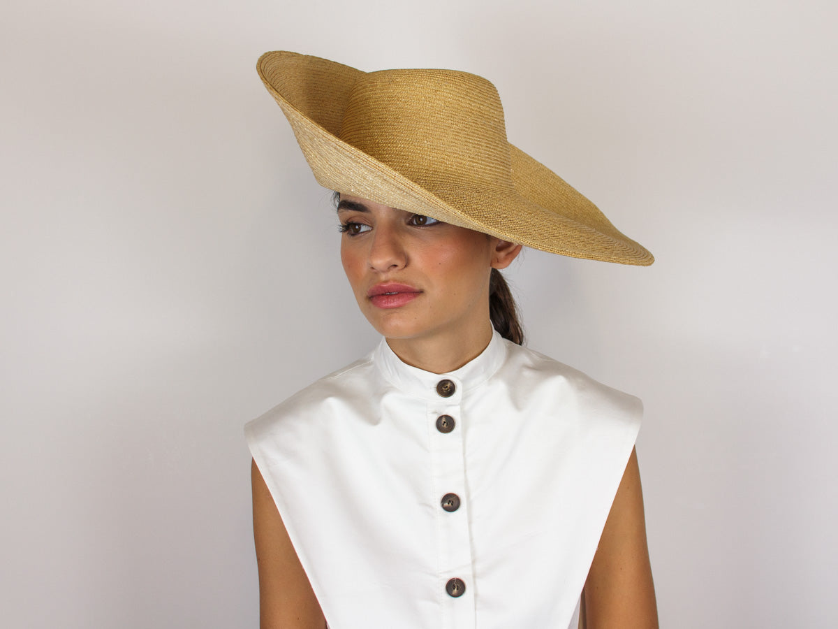 Pamela en paja cosida blanqueada. Copa cónica y media ala vuelta.