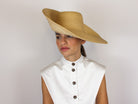 Pamela en paja cosida color tostado. Copa cónica y media ala vuelta.