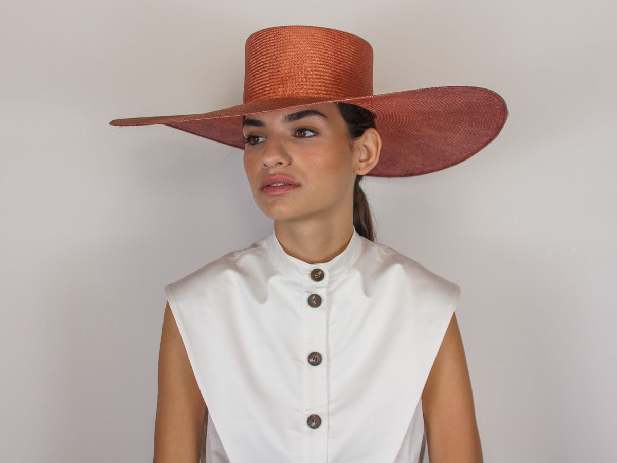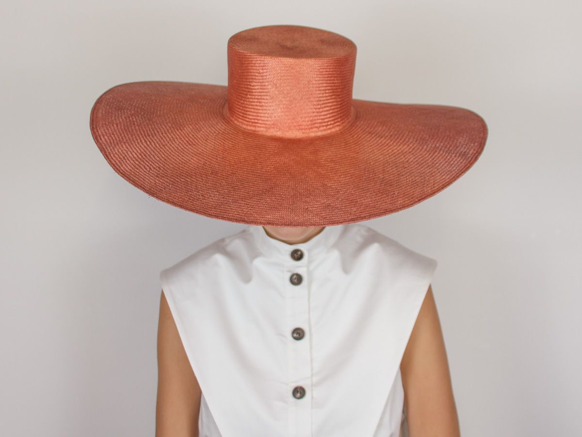 Pamela parasisal en color teja degradado. Diámetro: 52 cm. Alto de copa: 10 cm.