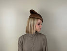 Casquete de parasisal color toffe decorado con aplicación del mismo material.