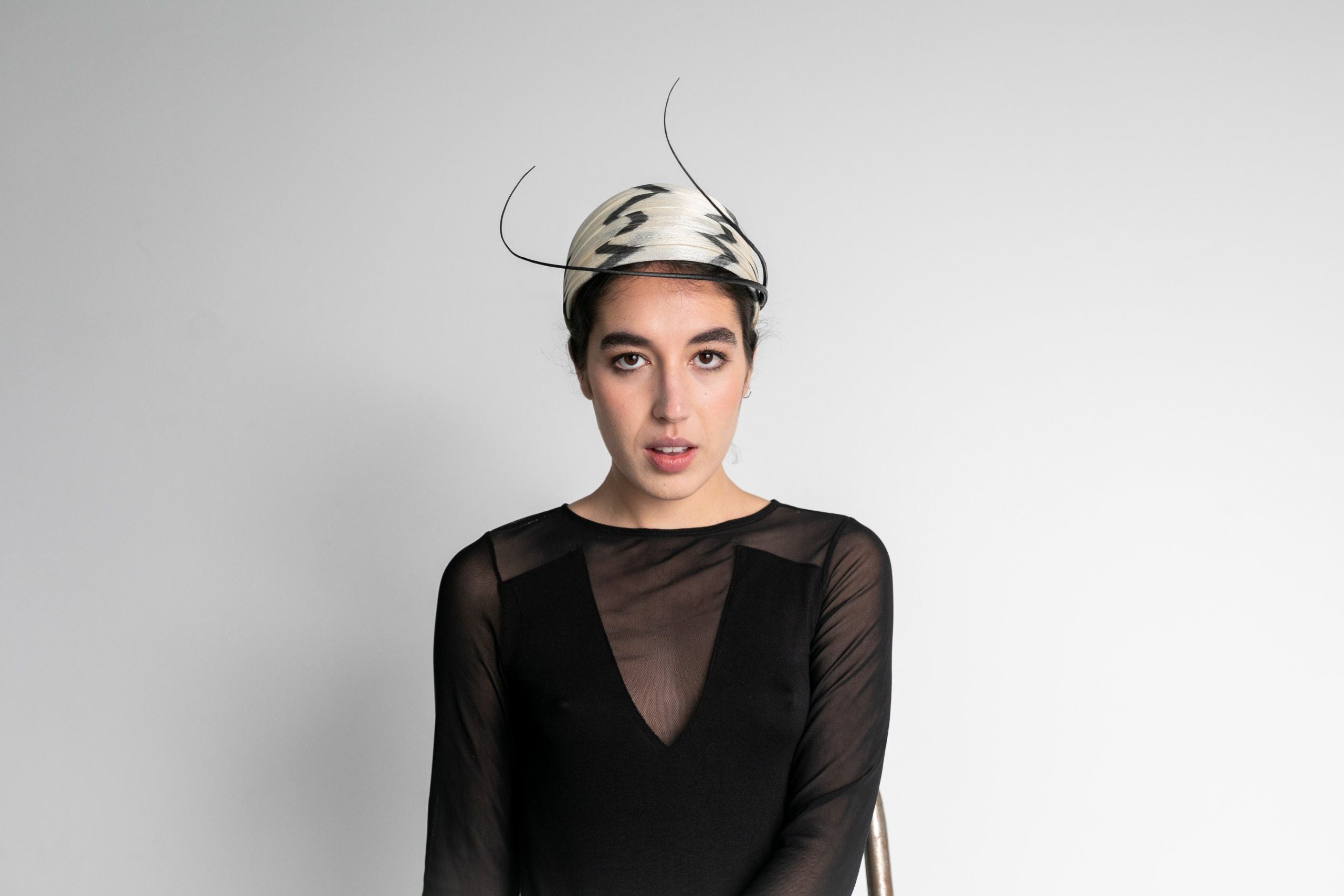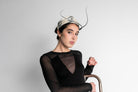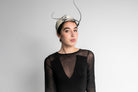 Tocado ideal para invitada de boda de mañana o tarde. Gracias a su forma, estiliza la figura.