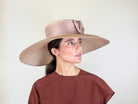 Pamela parasisal nude. Copa plana con aplicación de rosetón de organza de seda . Diámetro: 50 cm. Alto de copa: 9,5 cm.
