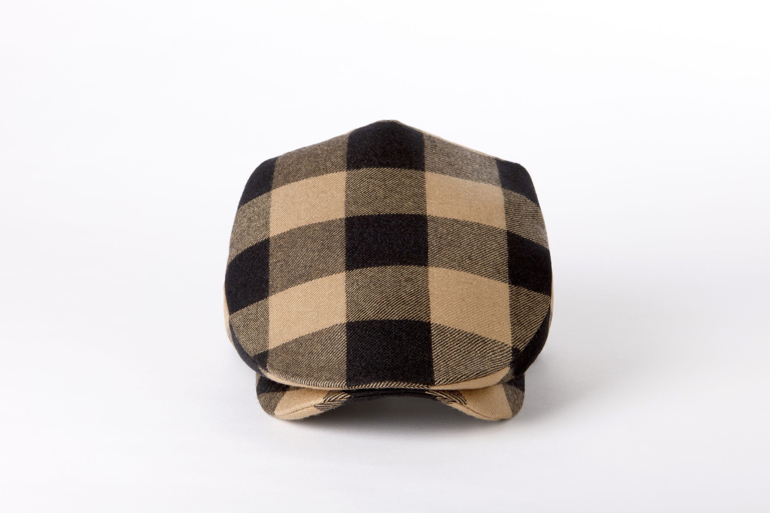 Gorra inglesa de lana estampada con cuadros camel y negro. Ideal para los meses más fríos del año. Clásica y atemporal.