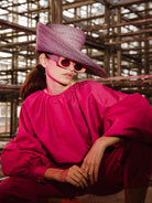 Sombrero de copa cónica y ala desigual, con media ala vuelta que facilita la visibilidad y estiliza la figura al generar un efecto visual diagonal.