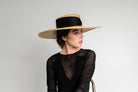 Pamela de paja natural decorada con cinta de seda salvaje color negro.