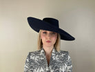 Sombrero de fieltro de pelo color azul marino. Copa cónica y media ala vuelta.